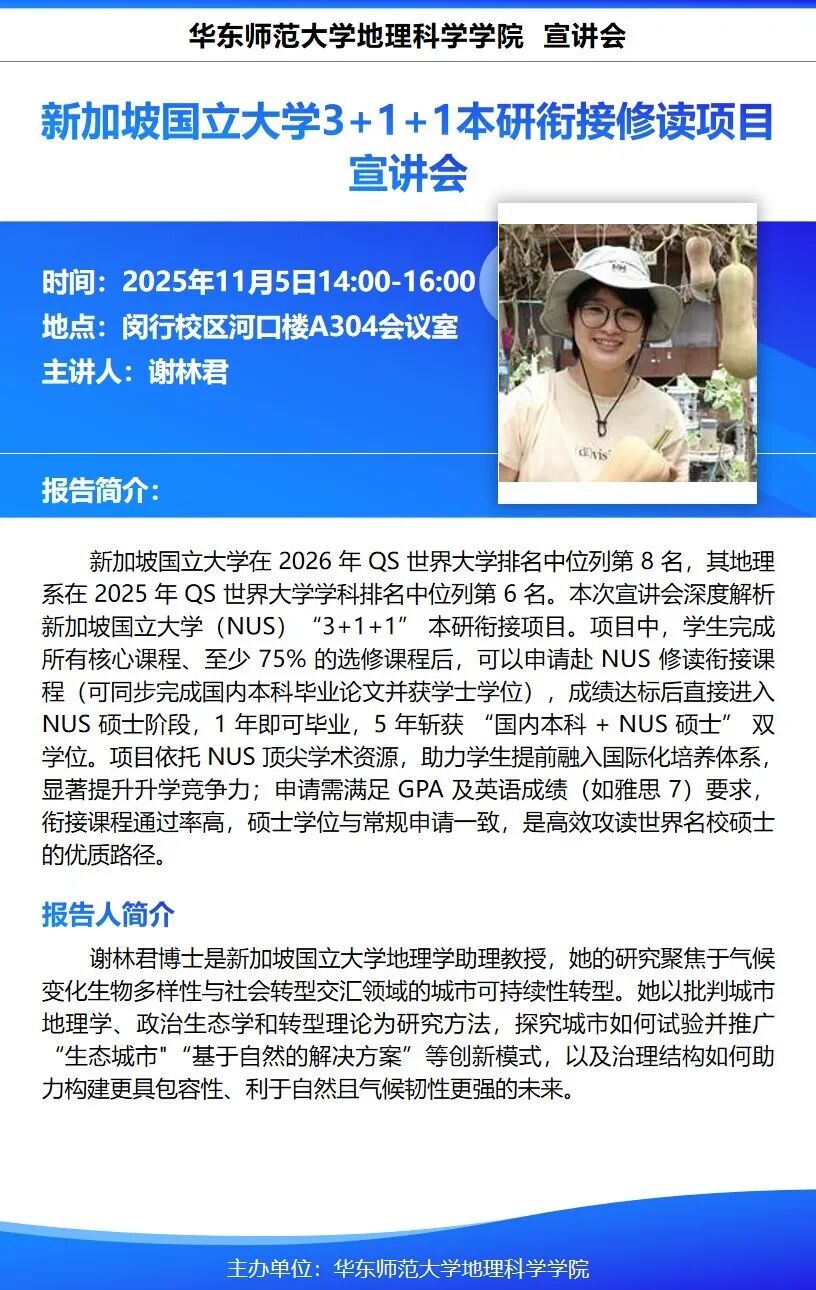 【宣讲会11-5】新加坡国立大学3+1+1本研衔接修读项目宣讲会