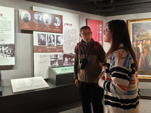 沿着展厅的光影,讲解员娓娓道来四大召开时的风雨岁月。广吉里弄的复原场景让人仿佛置身于1925年的上海:五卅惨案的回声未散,《热血日报》的油墨尚新,年轻的共产党人以笔为枪、以身赴义。师生们静静聆听,不时低声交流,那份沉默,是敬意,也是思索——百年之后,我们如何继续回答“为了谁、依靠谁、我是谁”的时代之问。