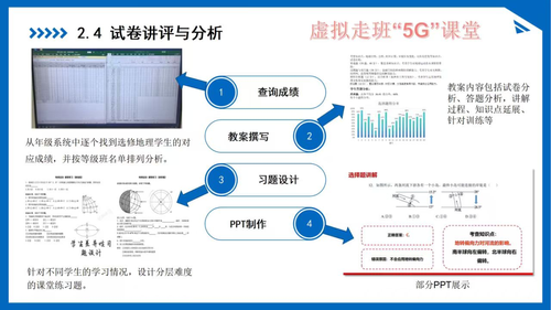见习体悟:我们观察到教学实践的辩证性,资深教师善用传统板书推导知识框架,如分步绘制三圈环流示意图,强化逻辑建构;青年教师则借助多媒体工具使抽象概念动态可视化,使用动画演示大气运动,加深学生的直观认知。这种传统与现代融合的策略启示我,教学需因材施教,而非固守单一模式。同时,学校创新的虚拟走班模式通过学业检测、智能分层等六步闭环,学生根据周练成绩自主选择进入2G班、3G班、4G班以及5G班。实现数据驱动的大规模因材施教,体现了技术赋能的效率提升。