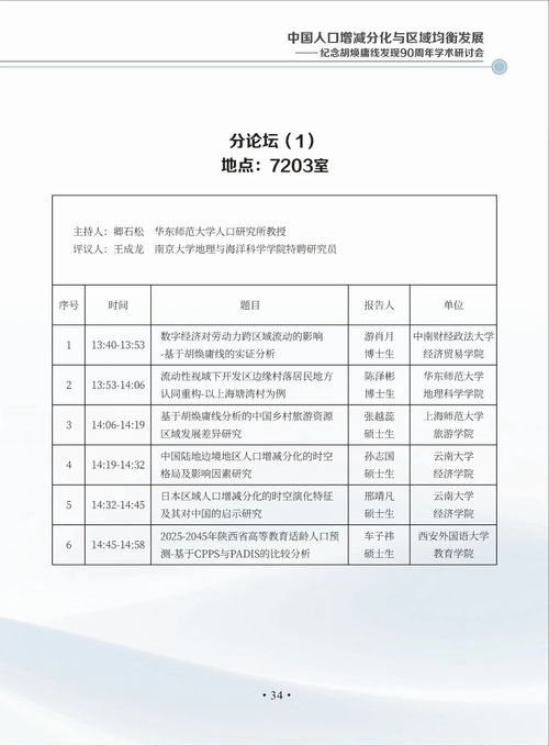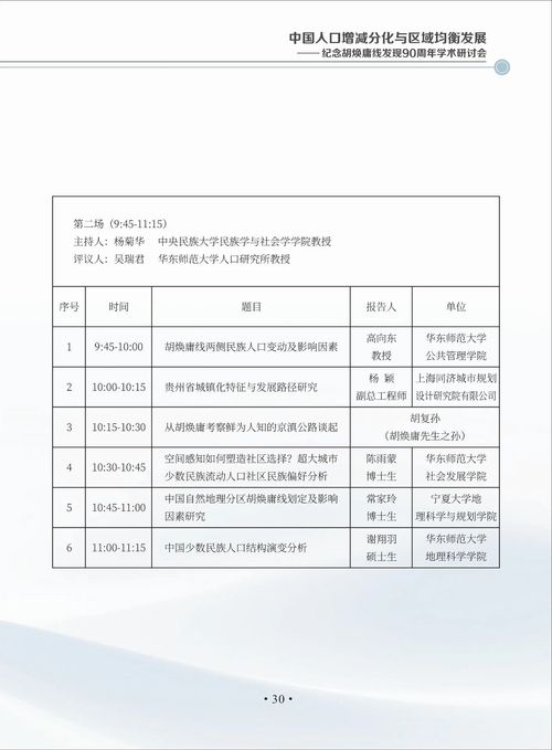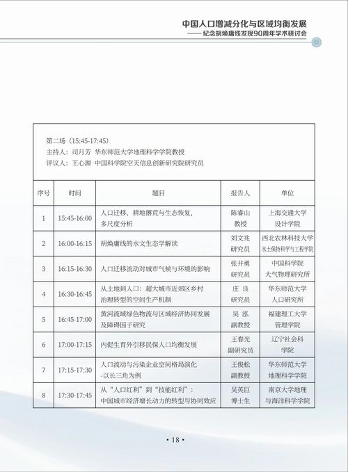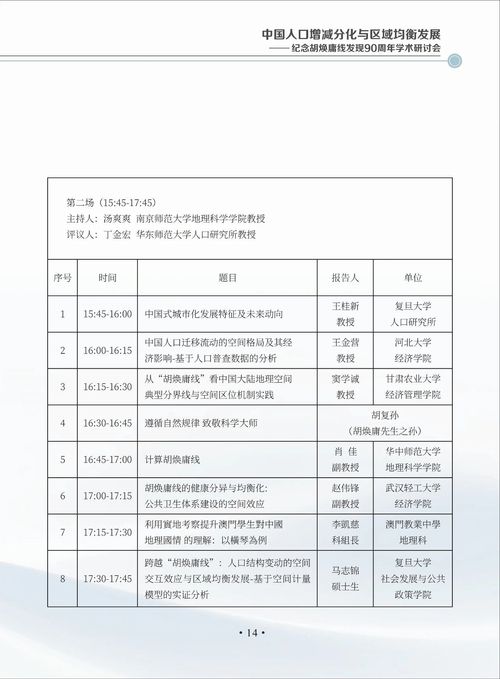 中国人口增减分化与区域均衡发展——纪念胡焕庸线发现90周年学术研讨会会议手册