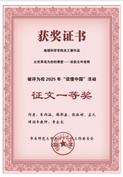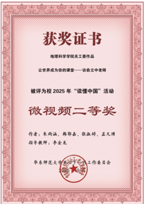学习科研外,韩郭嘉积极参与学生工作与社会实践活动,不断提升综合能力。在参加入党培训时,她作为优秀学生代表,采访了曾担任华东师范大学、上海纽约大学、上海师范大学三所高校校长的俞立中校长,参与新闻稿撰写与微视频制作,并获得了校2025年“读懂中国”系列活动征文一等奖、微视频二等奖。