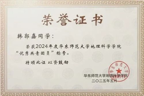 韩郭嘉,华东师范大学地理科学学院2023级地理科学拔尖班本科生,大二学年专业成绩和综合成绩均位列专业第一,担任“1+8学导制”学生导师、第37届学生代表大会学生代表、“乡土建设”学社干事、动物保护协会干事,主持和参与各类学科竞赛与科研项目。获评国家奖学金、华东师范大学优秀学生二等奖学金,华东师范大学地理科学学院优秀学生、优秀共青团员。