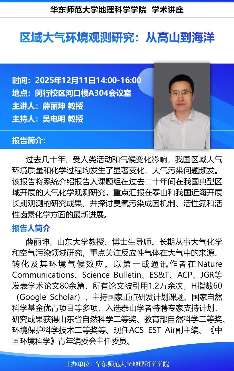 【讲座12-11】区域大气环境观测研究:从高山到海洋