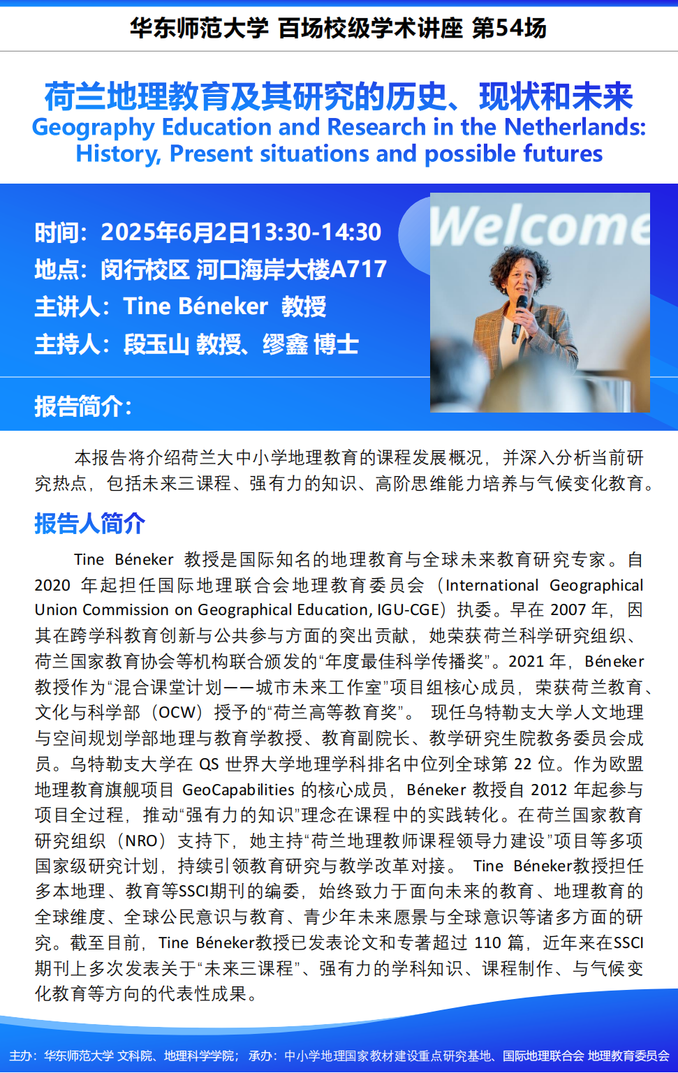 讲座预告丨Tine Béneker教授:荷兰地理教育及其研究的历史、现状和未来