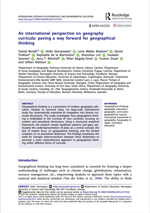 经过数月的线上协作与跨文化对话,研究成果以《An International Perspective on Geography Curricula: Paving a Way Forward for Geographical Thinking》为题,已于2025年6月正式发表于国际地理教育期刊 International Research in Geographical and Environmental Education。
