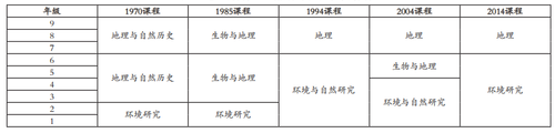 表1 地理科目在基础教育课程改革中的变化