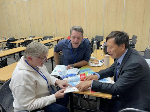 报告期间的交流环节,段玉山教授还现场展示了其主编的初中地理教材及配套教辅资料,通过“理论报告+实物展示”的结合,直观呈现中国地理教育的实践成果。其以教材为切入点的改革思路,引发与会学者的积极讨论,进一步扩大了中国地理教育创新经验的国际影响力。