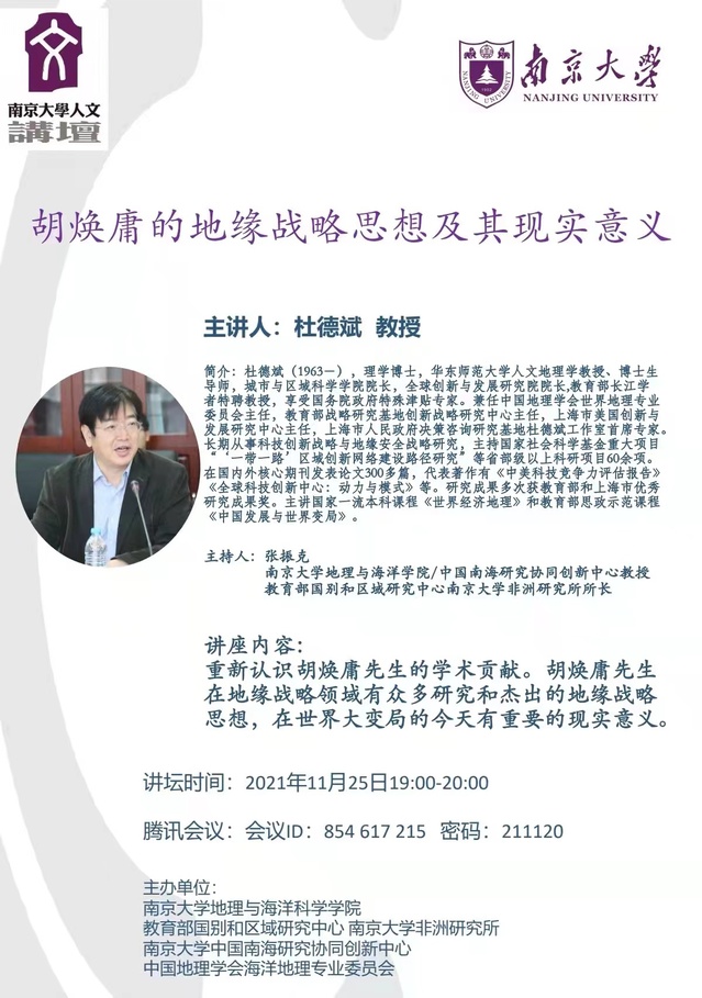 我院杜德斌院长受南京大学邀请开展胡焕庸的地缘战略思想及其现实意义宣讲
