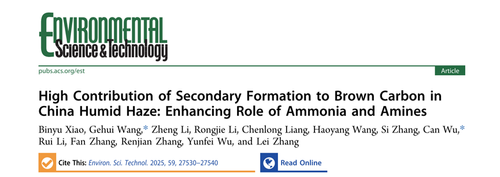 Xiao, B.; Wang, G.; Li, Z.; Li, R.; Liang, C.; Wang, H.; Zhang, S.; Wu, C.; Li, R.; Zhang, F.; et al. High Contribution of Secondary Formation to Brown Carbon in China Humid Haze: Enhancing Role of Ammonia and Amines. Environ Sci Technol 2025, 59 (50), 27530-27540. DOI: 10.1021/acs.est.5c13436.