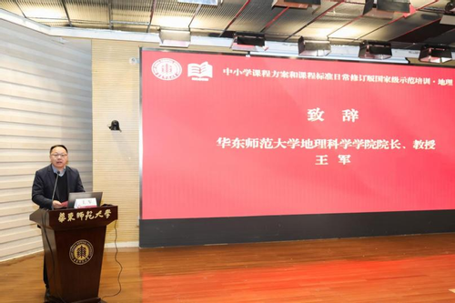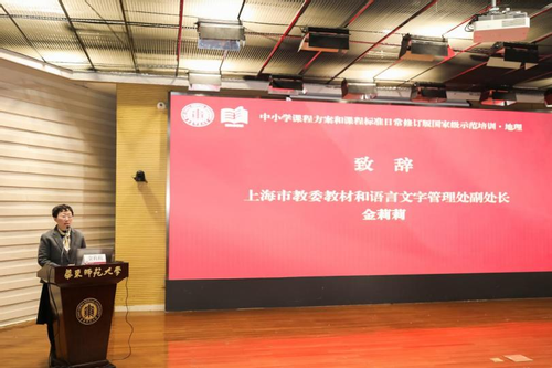上海市教育委员会教材和语言文字管理处副处长金莉莉、华东师范大学文科院副院长曹凯教授、华东师范大学地理科学学院院长王军教授分别致辞,从地方实施保障、学科建设和教师发展等不同层面,充分阐述了本次培训的重要意义。开班仪式由国家教材建设重点研究基地(中小学地理教材研究)主任段玉山教授主持。