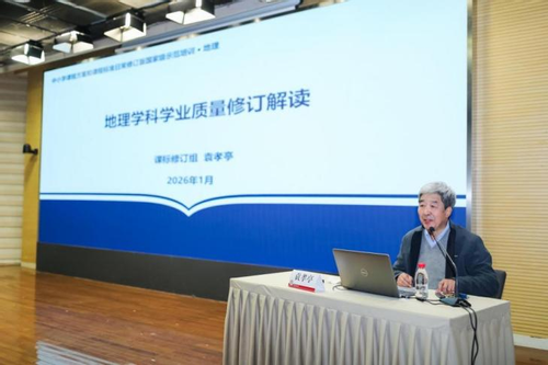 地理课标组核心成员、华东师范大学段玉山教授作《地理学科核心素养修订解读》报告,立足国际地理课程改革趋势和人工智能时代背景,系统解读地理学科核心素养修订的总体思路与主要变化。