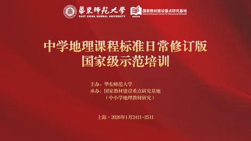 2026年1月24日至25日,由华东师范大学主办、国家教材建设重点研究基地(中小学地理教材研究)承办的中学地理课程标准日常修订版国家级示范培训在华东师范大学闵行校区成功举办,来自全国31个省、自治区、直辖市和新疆生产建设兵团的学科教研员、骨干教师代表和教材编写人员等250余人参加培训。
