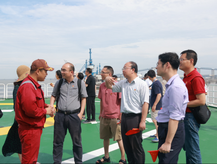 华东师范大学党委常委、宣传部部长王庆华对本次主题教育联学联建进行了总结。他表示,登上雪龙2号科考船很激动,能够近距离领略大国重器的魅力,感受到了其中所蕴含的国家科技自立自强的信心,也感受到了极地科考队员身上的“南极精神”“雪龙精神”,在极端的环境下,科考队员前赴后继,使我们国家在极地科考领域走向了世界前列。最后,王庆华指出当前华东师范大学积极对接国家重大科学需求,以卓越学术引领卓越育人,期待在党建引领下,华东师大能够与极地中心开展更多更深入的交流与合作,祝愿双方能够取得更多的科研成果,从而推动我国极地工作高质量发展。