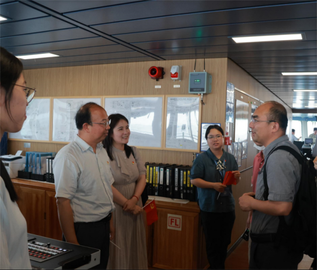 在雪龙2号极地考察船上,双方党支部开展了“在祖国最需要的地方建功立业”主题教育联学联建。中国极地研究中心科研第一党支部书记崔祥斌首先介绍了极地中心的基本情况,并详细介绍了极地中心科研第一党支部的人员组成、学科分布以及重点研究领域和研究进展。崔祥斌表示,当前我国正在实施海洋强国战略和创新驱动发展战略,将“发展海洋经济,保护海洋生态环境,加快建设海洋强国”“加快实现高水平科技自立自强”写入党的二十大报告,是对极地科考事业新的指引和推动,极地中心党员将前赴后继落实我国在南北极的重大国家战略。
