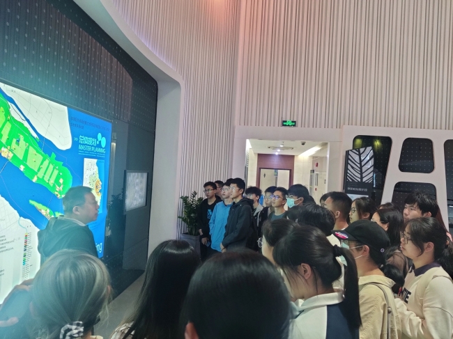 中午时分,实习师生还来到了我校的崇明生态研究院,参观了能源楼的办公空间和科研成果展示空间,对运用多源数据研究地方发展和生态建设相关问题有了初步的理解,同时,也深切体会到学校和学院可以在崇明的世界级生态岛建设中发挥积极作用。