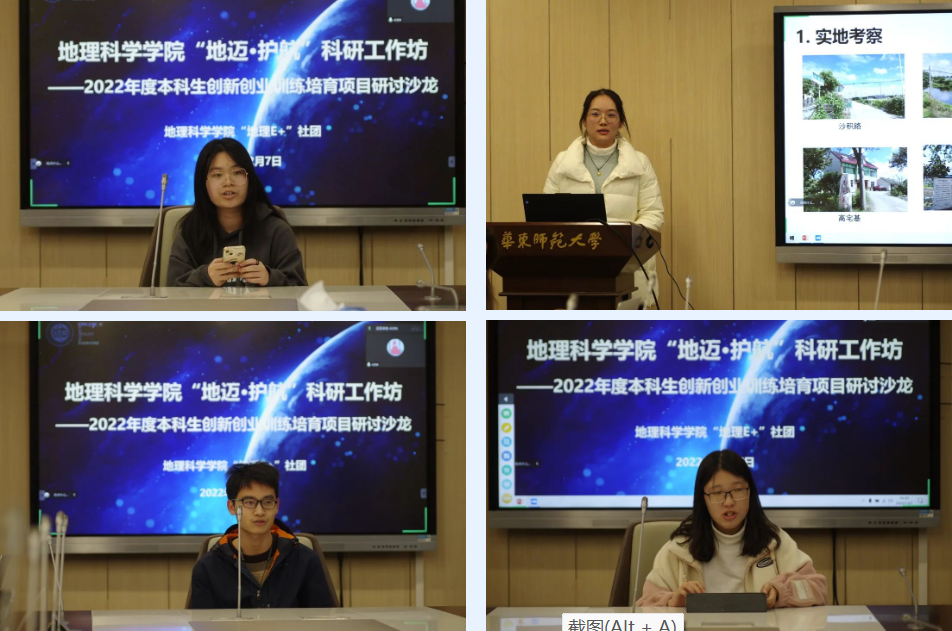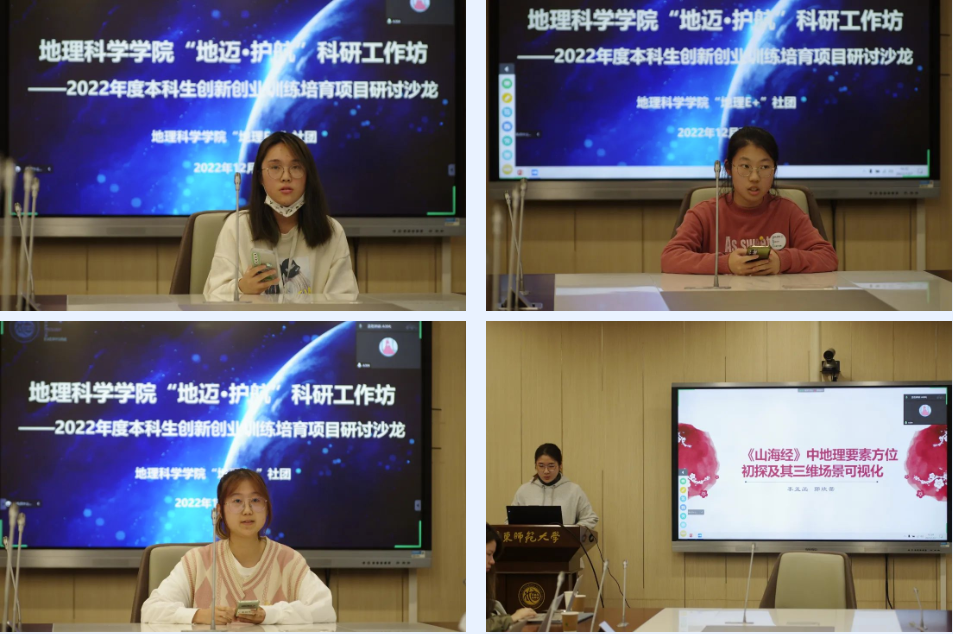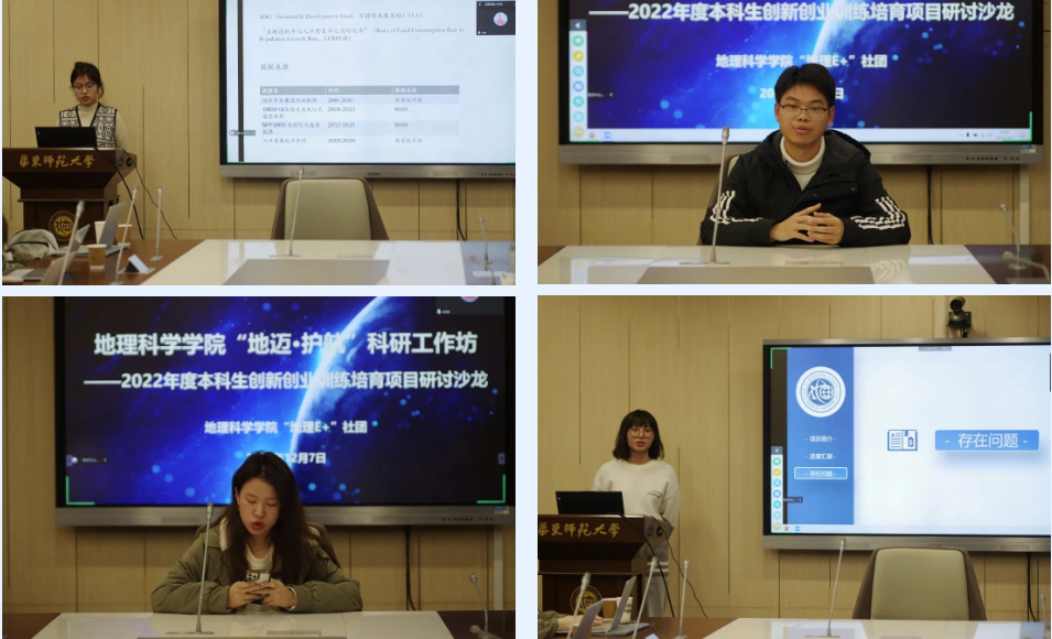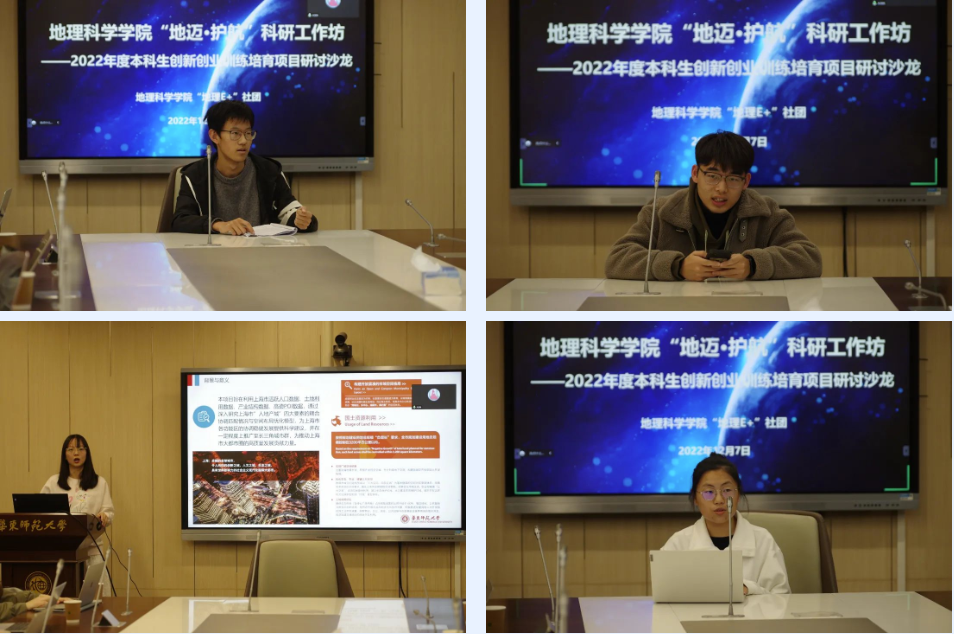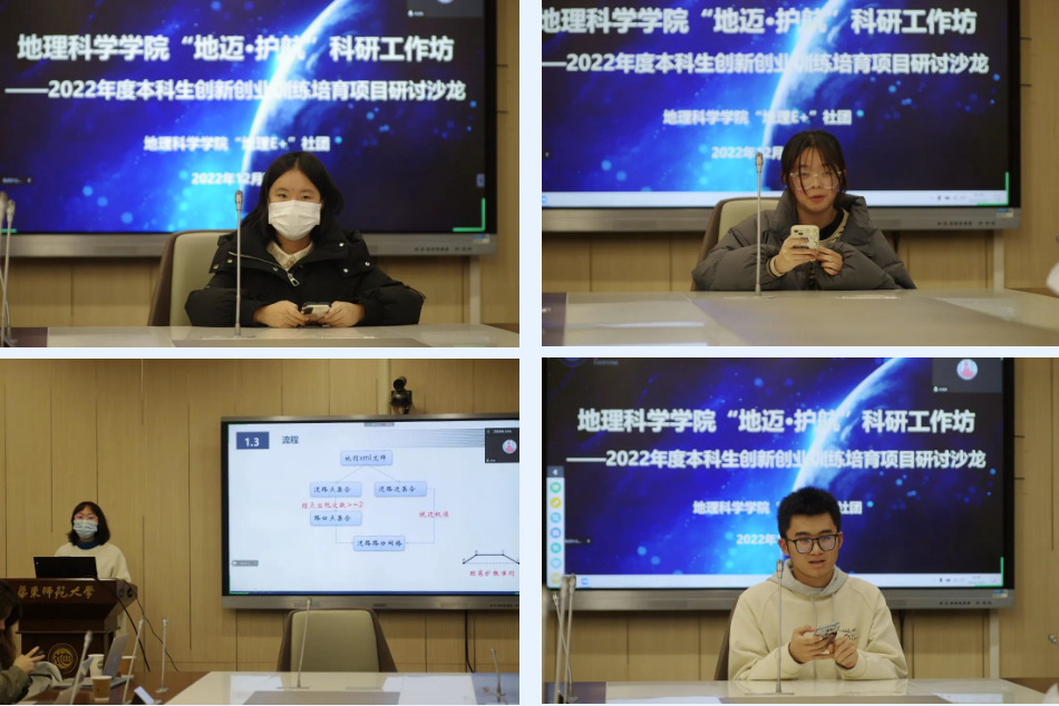 为及时跟进同学们的项目完成进度,了解和帮助解决同学们在创新创业训练过程中遇到的困难,营造良好的学术氛围,12月7日下午,由地理科学学院“地理E+”社团组织举办的地理科学学院“地迈·护航”科研工作坊——2022年度本科生创新创业训练培育项目研讨沙龙活动在河口楼A304圆满举办。地理科学学院党委副书记罗艺,本科生青年班主任、青年研究员李超、李睿受邀参加。活动由地理科学学院团委副书记、“地理E+”社团指导老师侯静惟主持。