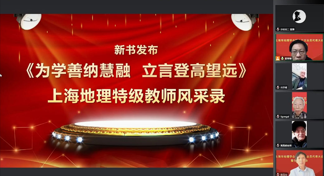 2022年12月31日,上海市地理学会第十二次会员代表大会暨学术研讨会在华东师范大学闵行校区河口海岸大楼A615以线上、线下相结合的方式顺利召开。中国地理学会原理事长傅伯杰院士,中国地理学会副理事长、秘书长张国友研究员,中国地理学会前副理事长、上海市地理学会名誉理事长、上海纽约大学名誉校长俞立中教授,上海市地理学会第十二届理事会理事长刘敏教授,上海市科协学术部朱慧副部长等出席了本次会议。来自复旦大学、上海交通大学、同济大学、上海师范大学、上海市环境科学研究院、上海市地震局、上海市水利工程设计研究院、中国极地研究中心、中华地图学社,上海市教委教研室,各区教研系统、各区中学,以及华东师范大学地球科学学部各学院150余名代表参加了本次大会。大会开幕式由上海市第十二届理事会副理事长、复旦大学中国历史地理研究所所长张晓虹教授主持。