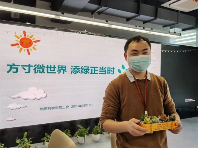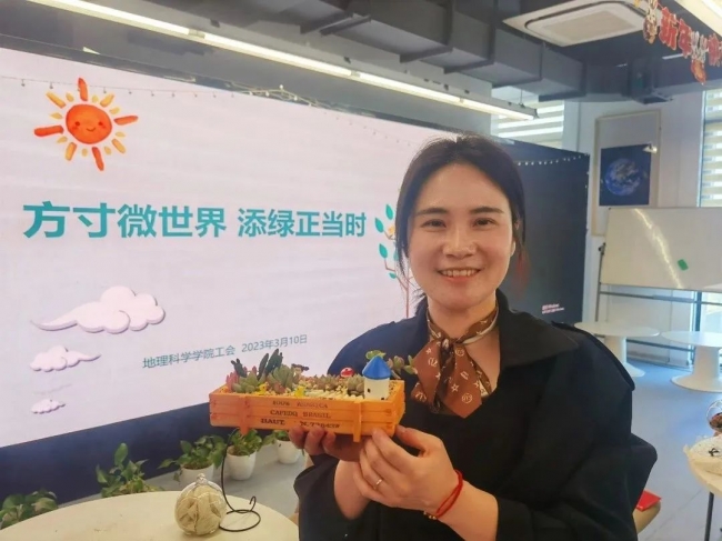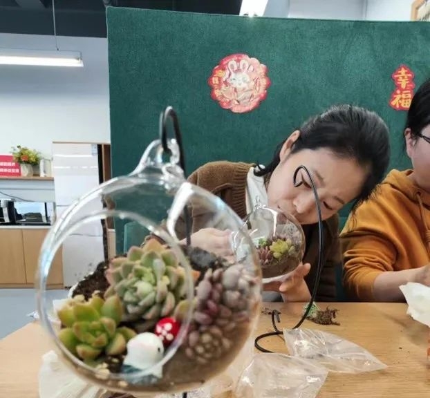 一年春光好,植树添绿正当时,恰迎女神节、植树节,为丰富全院教职工精神文化生活,提升幸福感,2023年3月10日(周五)下午2点,学院工会在工会小家河口楼A608组织开展了一场“方寸微世界 添绿正当时”DIY盆栽微景观制作活动。
