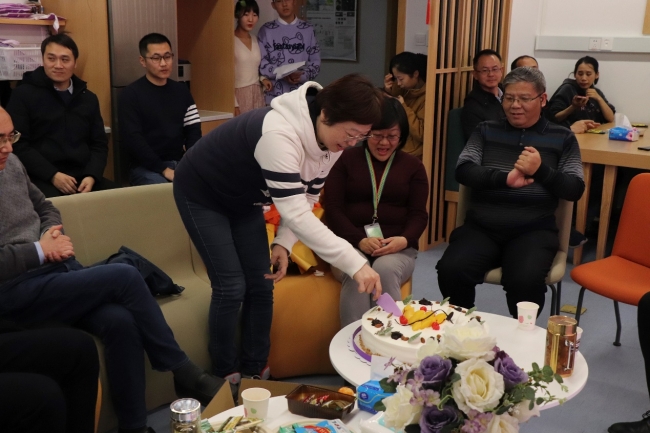 随后刘敏院长、段玉山书记代表全院教职工为退休老师叶奇送上了蛋糕、鲜花和祝福。叶奇老师很是感动,祝愿学院越办越好!
