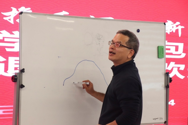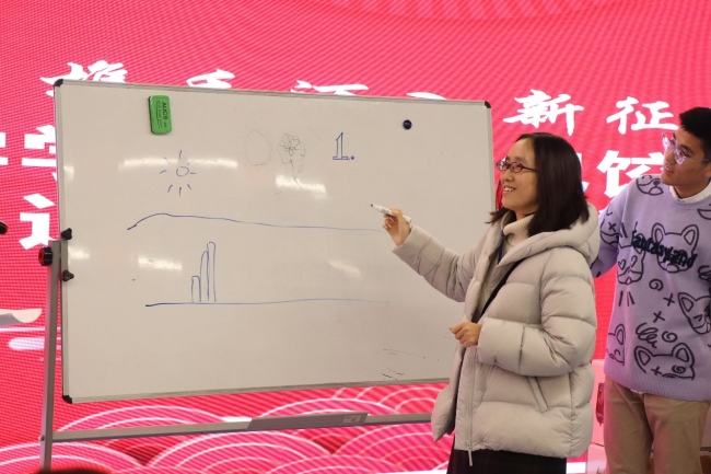 随后,进入期待已久的游戏和抽奖环节,首先进行的第一个游戏是“你画我猜”,内容都是与地理相关,如“雪线”“栅格数据”等,由一位老师在白板上画出图案,现场老师共同抢答正确答案。老师们踊跃抢答,总能在图案画完前就猜出正确答案。