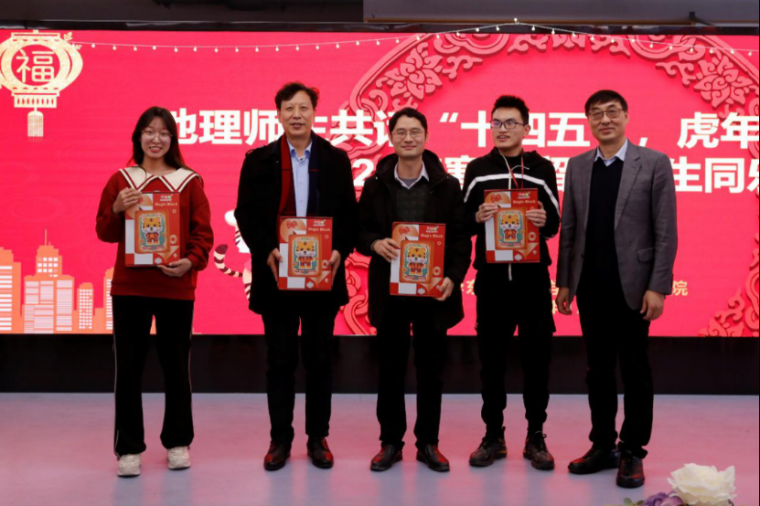 院党委书记段玉山指出,华东师大地理学历史悠久、底蕴深厚,经过长期的发展,在一代又一代地理人的努力拼搏中,打下了坚实的基础。他提到,学院领导班子一直肩负着把华东师大地理学传承好的历史重任,在学科建设、科学研究、人才培养等方面所做出不懈努力并取得喜人的成绩。未来,学院将在高端人才引进、顶级期刊发表、卓越人才培养等方面继续努力。最后,段书记对过去一年中全院师生的努力表示了衷心的感谢,祝愿学院在虎年能够虎虎生威、龙腾虎跃、跨越发展。