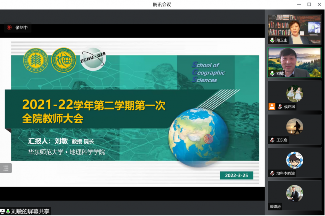 院长刘敏首先通报了学校教师大会近期重点工作,梳理了学院在科学研究和人才培养方面的概况,传达了学校“”明确定位,立足卓越,强化服务,推进具有华东师大特色的一流大学建设”的重点工作目标。2022年,是学校“十四五”规划和新一轮“双一流”建设全面实施、卓越育人和卓越学术纵深推进的关键之年,学院要深入思考进行布局,深入思考未来的发展方向和路径、模式,以国家重要基地和平台建设为契机,形成“1+1+3”平台格局。最后,刘敏表示,疫情当下全院教学、科研和管理服务工作仍然有序高效开展,离不开广大教师的共同努力,在这个特殊时期,希望大家继续保持昂扬的斗志,实现疫情防控和事业发展齐头并进。