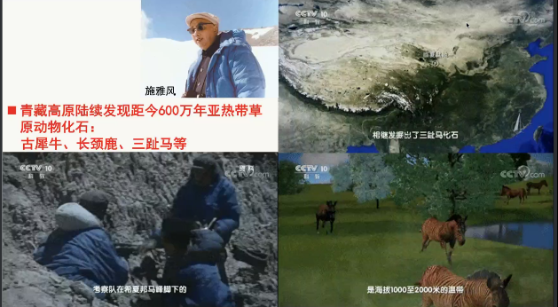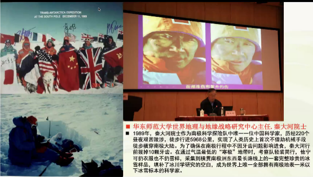 讲座第一部分,段玉山书记首先分享了中国地理学家的科研贡献的二三事,包括刘东生、施雅风、常承法、孙鸿烈、李四光、谢家荣、竺可桢等多位学者的事迹。刘东生院士提出了“新风成说”,为黄土高原学说做出了重大贡献;刘东生、施雅风等院士通过实地科考,用板块构造学说揭示了青藏高原的成因;李四光、谢家荣等地质学家在艰苦探索下帮助中国摘掉了“中国贫油论”的帽子;李四光院士还通过实地考察,找到了中国东部第四纪存在冰川的证据。