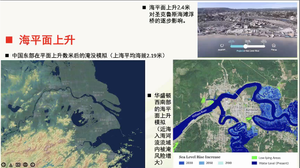 在讲座的第二部分,段书记从地学的视角,讲到了中国科学事业的责任与使命。他从全球环境变化对人类带来的挑战说起,如碳排放导致全球变暖,进而破坏温盐环流,导致极端天气、灾害性天气频发,造成海平面的上升。段玉山书记还讲述了在伦敦霍乱、禽流感、埃博拉等事件中,地理空间方法为分析和控制疫情所起的作用。