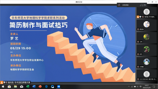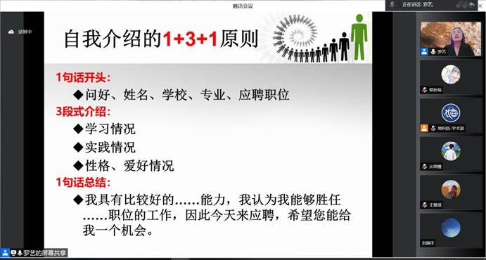 为进一步推动学生高质量就业,提升学生综合竞争力,精准服务学生需求,学院于5月29日举行简历制作和面试技巧讲座。本次讲座由学院党委副书记罗艺老师主讲,采取线上举行的方式,吸引众多学生前来参与。