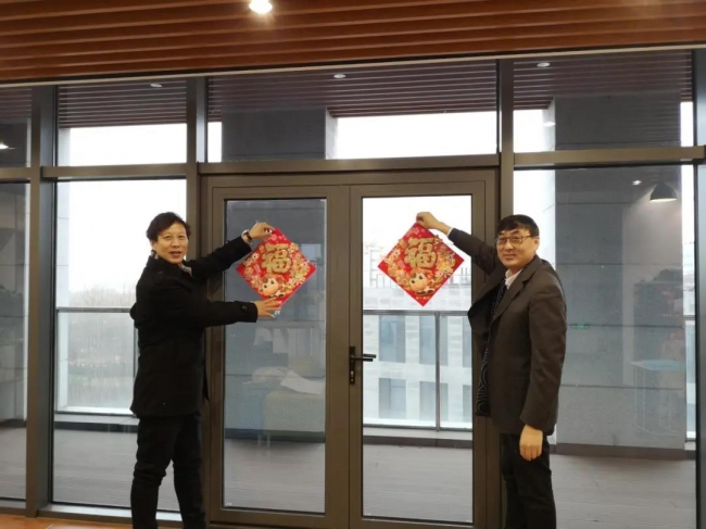 院长刘敏、院党委书记段玉山共贴春联、福字