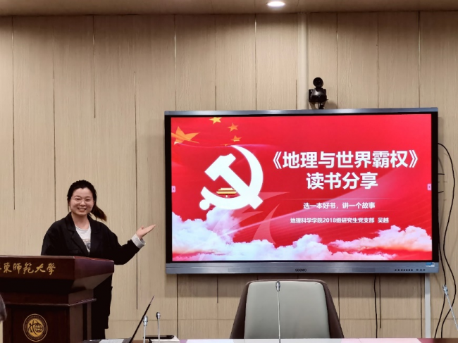 为进一步落实党史学习教育,向党建百年及学校七十周年华诞献礼,2021年4月28日,地理科学学院2018级硕士研究生党支部在河口海岸大楼A304会议室举行了以“选一本好书,讲一个故事”为主题的读书分享活动。读书分享会由支部书记陈红星同学主持。