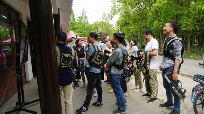随后,部分老师们还参加了真人CS对抗比赛,在竞技积攒战斗友情和欢乐。