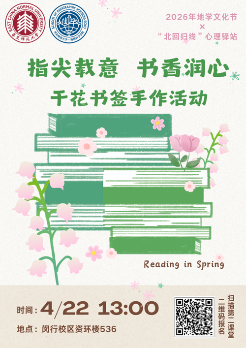 春风翻动书页,花香邂逅墨香。适逢世界读书日与世界地球日交汇之际,地理科学学院经典阅读季主题活动——“指尖载意,书香润心”干花书签手作活动,邀你暂别喧嚣,用指尖触碰自然与经典的温度。