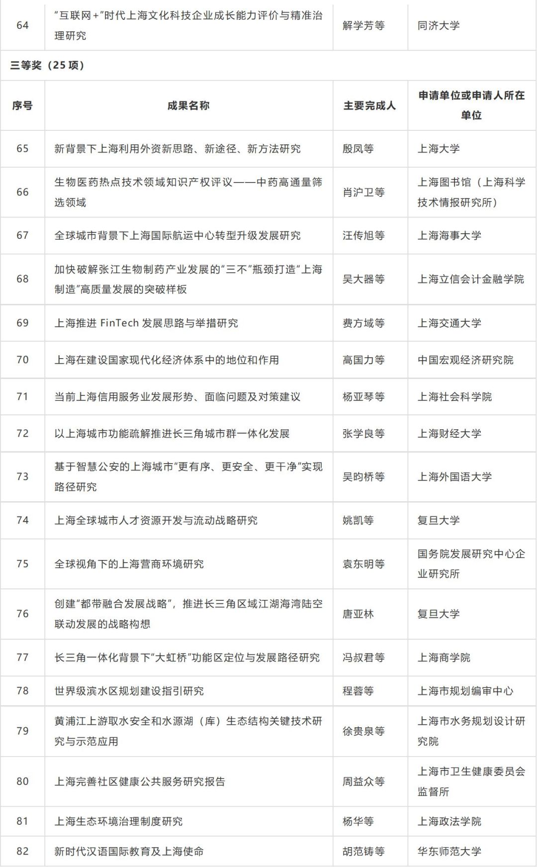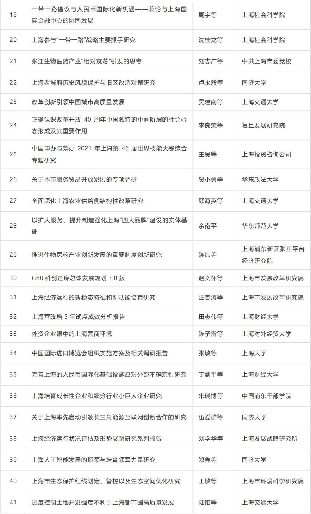 附:第十二届上海市决策咨询研究成果奖名单