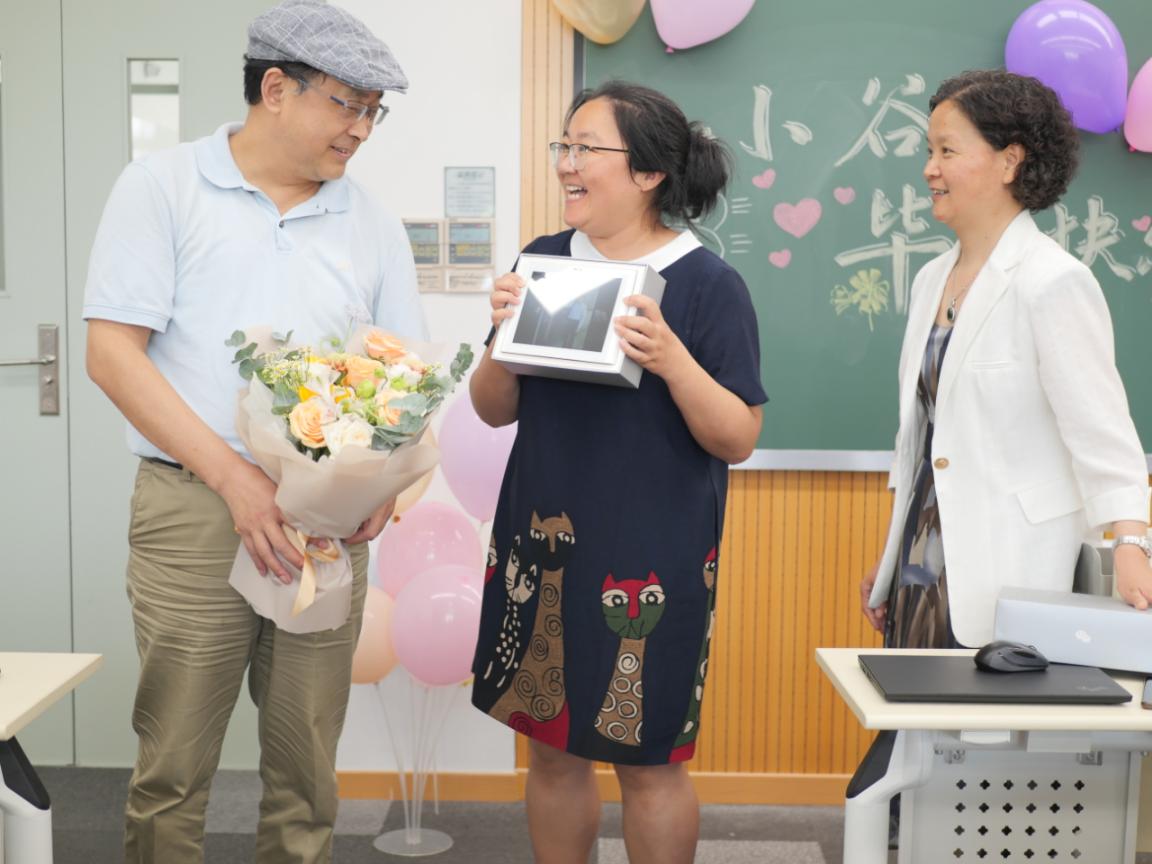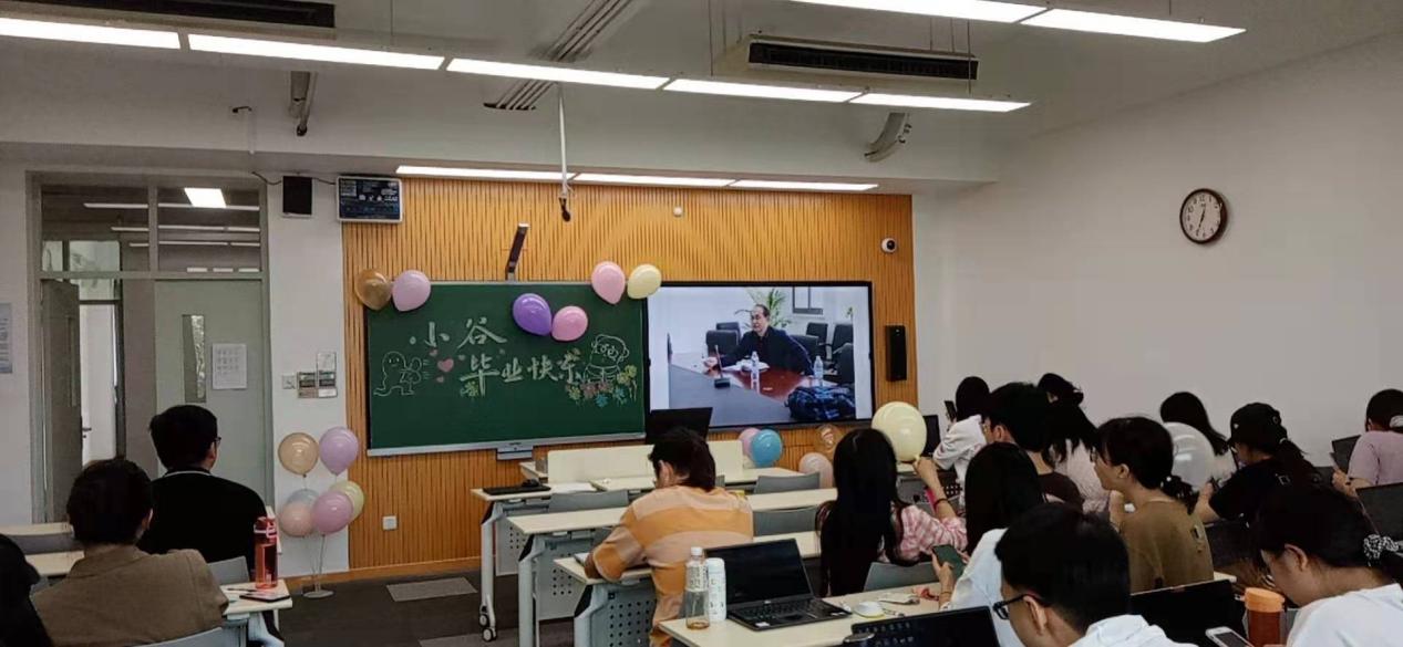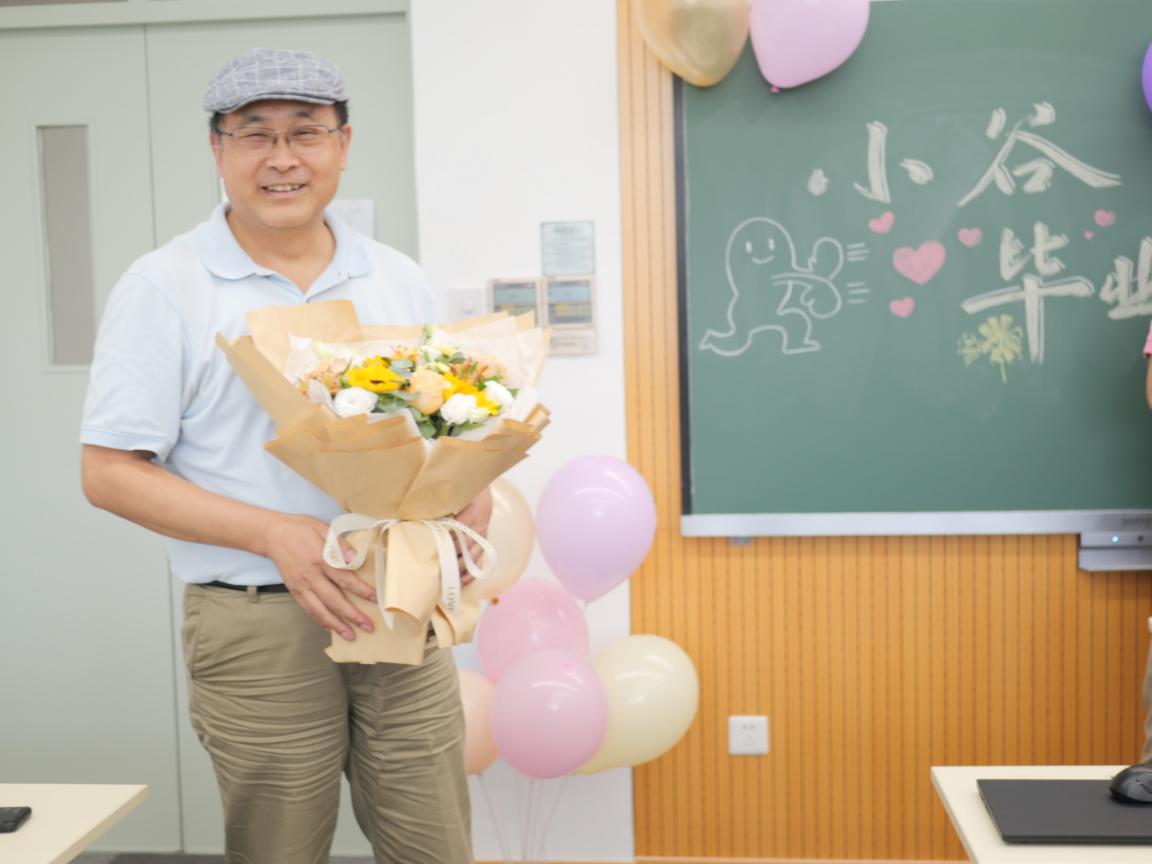 学生们向谷老师献花、送明信片,每个人都向谷老师表达了诚挚的感谢与祝愿。谷老师师门已毕业的同学们也通过视频的方式回忆起与谷老师相处的点滴,感谢谷老师的教导与指引。
