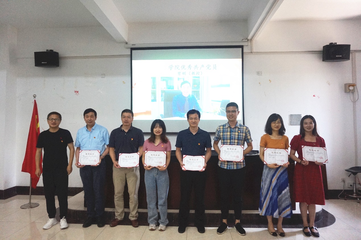 今年上半年,经过党组织的培养、考察,有一批新同志加入到党员队伍中,在大会会场,学院优秀共产党员代表曾刚教授带领新党员陈鹏鑫、黄晓光、岳梦婷、孙茜、洪萍面对党旗庄严宣誓,表达对党和共产主义的忠诚与热爱,坚定为共产主义事业奋斗终身的决心。希望新党员能够始终按照党员标准严格要求自己,在学习和生活中发挥党员先锋模范作用,用实际行动践行誓言。
