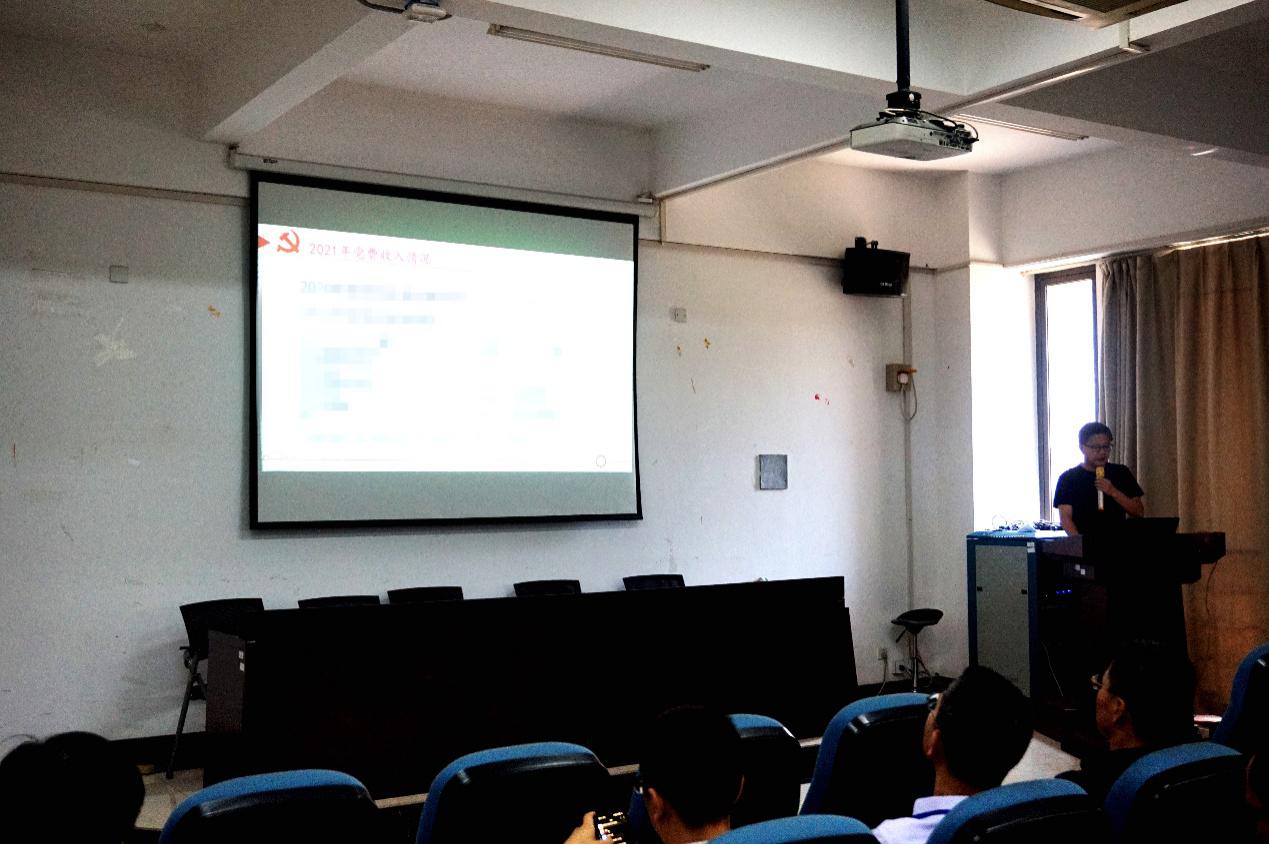 在本次大会上,学院党委书记孙斌栋汇报了2021年上半年党费收入、缴纳及使用情况,请党员同志对党费收缴及使用情况进行监督。