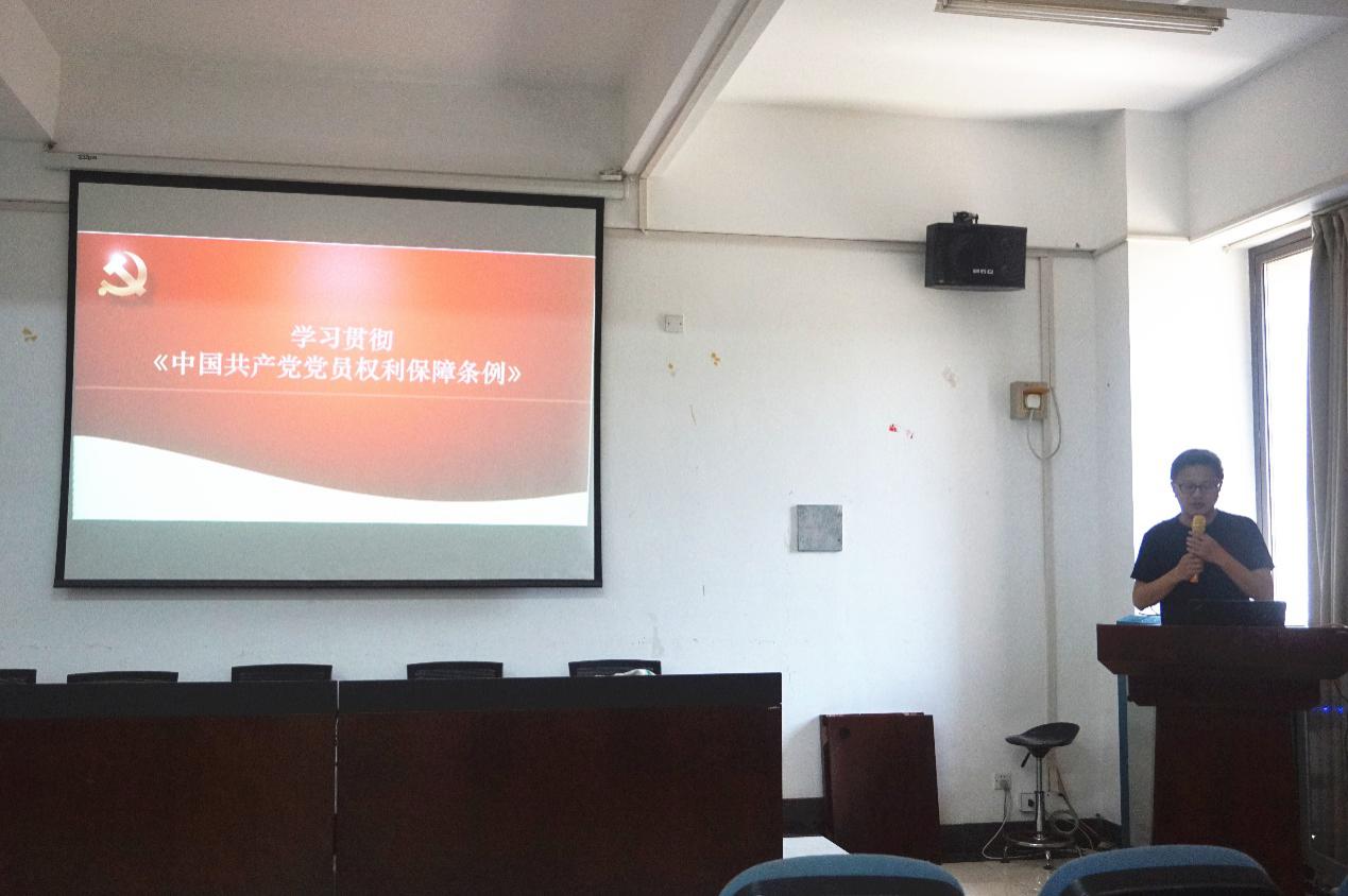 学院党委书记孙斌栋做《学习贯彻<中国共产党党员权利保障条例>》党课教育,从认识《条例》修订的背景意义、把握《条例》修订的精神及内容两个方面进行解读,强调各位党员要坚持义务和权利相统一,正确行使党员权利。