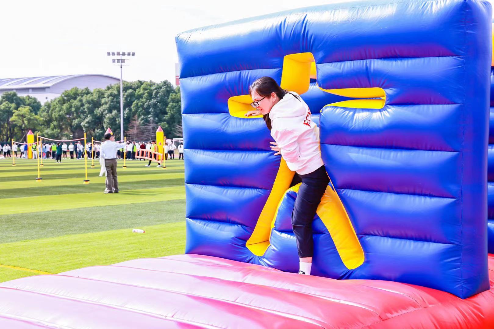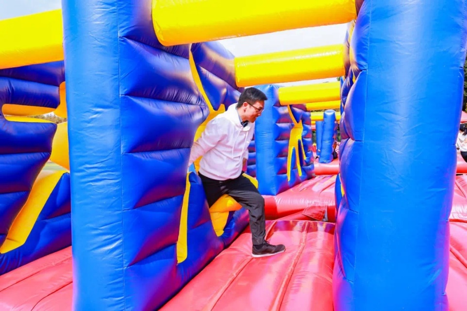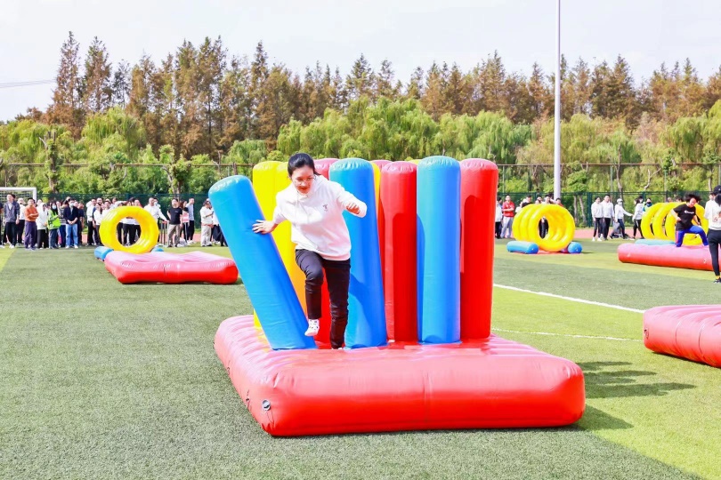 随后在西操场进行了教职工趣味运动会,学院教职工们与全校同仁围绕“障碍闯关”、“协力云梯”、“航天小分队”三个趣味项目展开角逐。我院教职工运动员积极参与、奋勇拼搏、团结合作,在比赛中取得佳绩。其中航天小分队项目荣获二等奖,校园广播操荣获优秀表演奖。