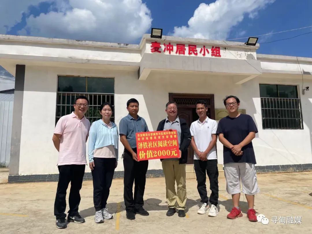 孔翔代表华东师范大学城市与区域科学学院经济地理系党支部,向泽铁社区捐赠价值2000元的乡村阅读空间。县委常委、副县长朱文佳陪同调研。