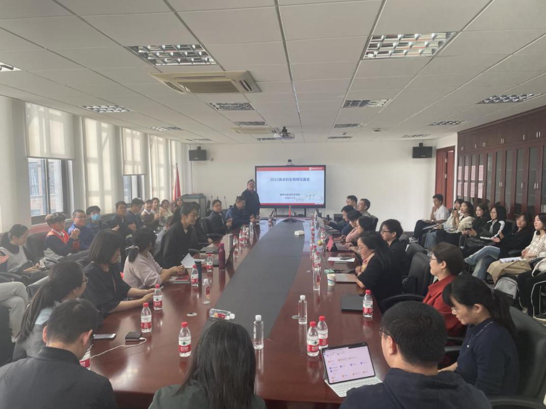 随后,辅导员李金龙老师从年龄、生源、民族等方面简要介绍了学院2022级新生的基本情况,拉近了师生间的距离,也使会议的氛围更加轻松。