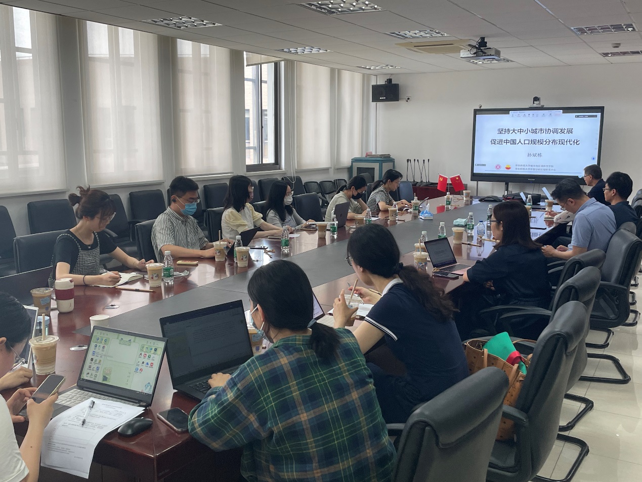 为深入学习贯彻习近平新时代中国特色社会主义思想主题教育,推动广大党员用科学理论武装头脑、指导实践、推动工作,2023年6月1日上午10:00,华东师范大学城市地理系教工党支部在资环楼539会议室和腾讯会议平台举行集中主题教育学习暨六月份主题党日。本次主题教育学习邀请到城市与区域科学学院党委书记孙斌栋教授,作题为“坚持大中小城市协调发展促进中国人口规模分布现代化”的报告。活动由城市地理系党支部书记申悦副教授主持,除城市地理系教工党支部党员以外,另有六十余位师生党员及群众线上线下共同参与本次学习。