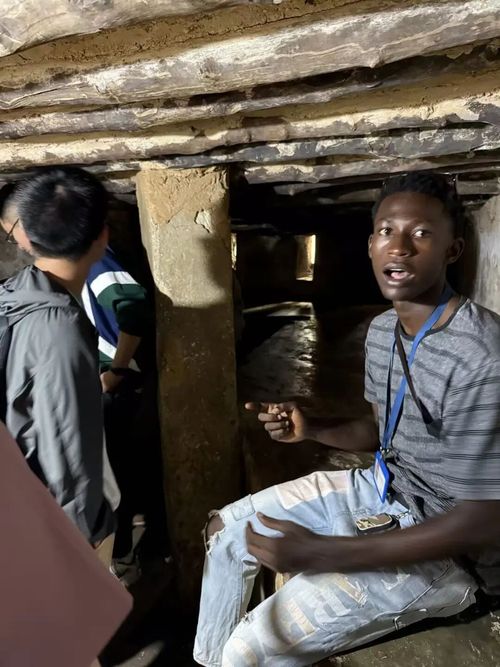 师生们考察石头城中关押黑奴的地牢