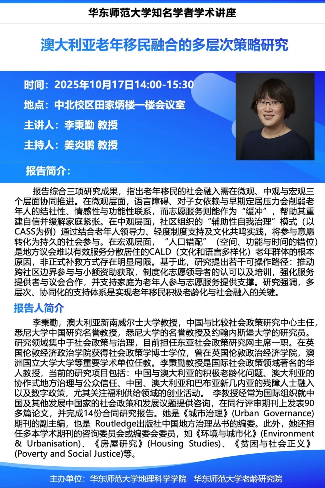 【讲座10-17】澳大利亚老年移民融合的多层次策略研究