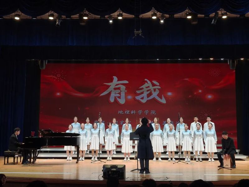 地理科学学院“银杏杯”纪实金杏风织青春谱地理声振时代潮“金杏一径秋,青春踏歌来”。12月7日,在华东师范大学闵行校区音乐厅,由校团委主办的“青衿咏韶光,强音谱华章”——2025年度“银杏杯”青春歌会决赛盛大开幕。地理科学学院合唱队以一曲《有我》登台,将地理学子的热忱与担当融入旋律,唱响时代之声。自秋意渐浓时,地理科学学院学生会文体部便投入紧张的筹备中。从队员的精心招募,到曲目的细致甄选,再到排演的周密统筹,每一步都扎实稳健,既体现着地理学子的严谨智慧,也凝聚着团队协作的辛勤汗水。一个多月的排练过程中,起初生涩的声部在一次次的练习中逐渐默契,每一次磨合都是团队的自我超越。决赛之夜,聚光灯如日光铺